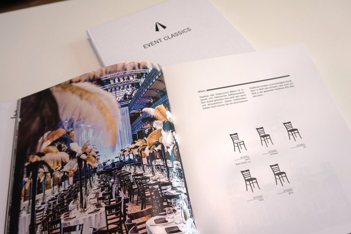 Target: The series of catalogues gets across the claim and core values of the European market leader; to be qualitatively and quantitatively able to create almost any desired atmosphere for any occasion, for any event size. The special catalogues explain the capability of range and brand by informing diversely and illustratively about form, materiality, function and practical opportunities for use of the products and the corresponding services.